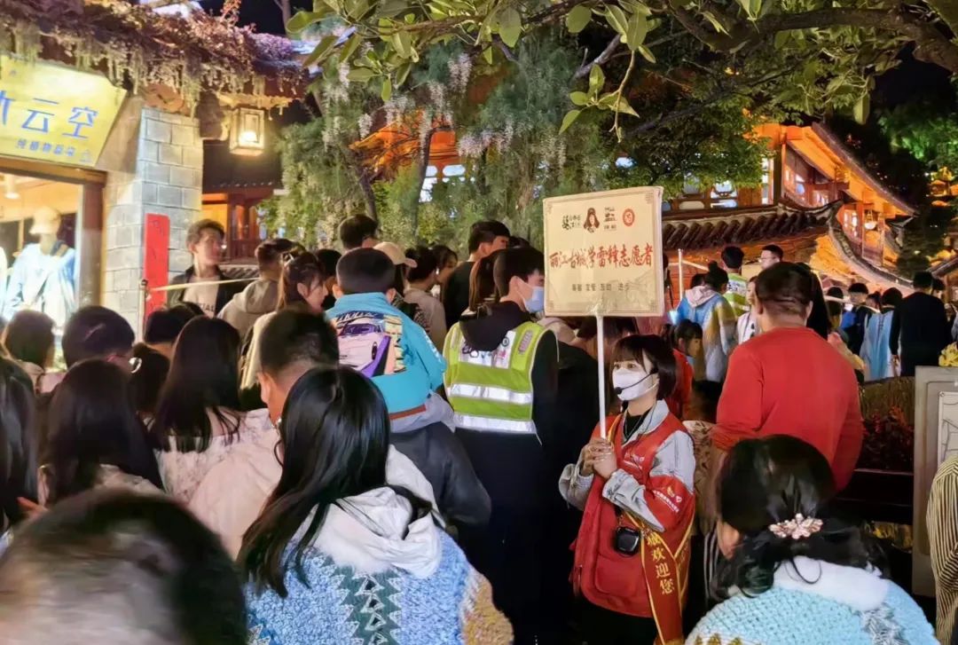2015年12月4日,丽江古城保护管理局牵头成立了丽江古城中国旅游志愿者服务队。经过长期的组织和发展,现已形成以市区机关单位、古城保护管理局、古城经营户、在校学生、社区居民为主的5支文明旅游服务分队。2017年1月至2023年4月,总参与服务人数达8.16万人次,实现了保障景区安全、维护旅游秩序、树立文明景区形象三大目标,受到游客广泛好评。