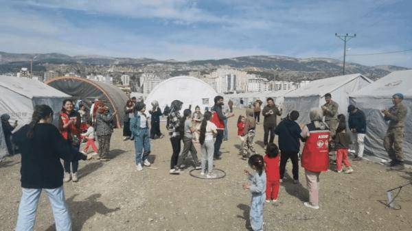 “中国村”安置点由土耳其中资民营企业商会与土方合作建设,由中国乡村发展基金会捐赠帐篷。村内设有保健室、洗衣房等设施,可满足居民基本生活需求,还尊重当地习俗设置了祷告室。“中国村”曾一度为近400人提供生活保障,目前有287名受灾民众入住。