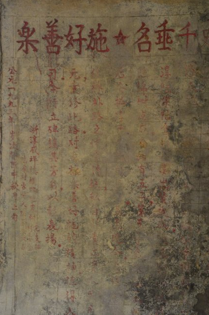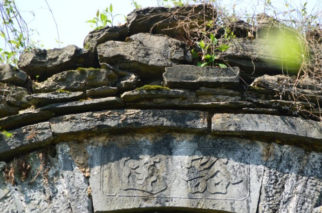 墙的内壁有一个方形缺口,上面有一个红五星,红五星上面隐隐可见“淳歙人民友谊万岁!”字样,这样的口号,明显是建国初期的杰作,那个方形的缺口里应该是个神龛。