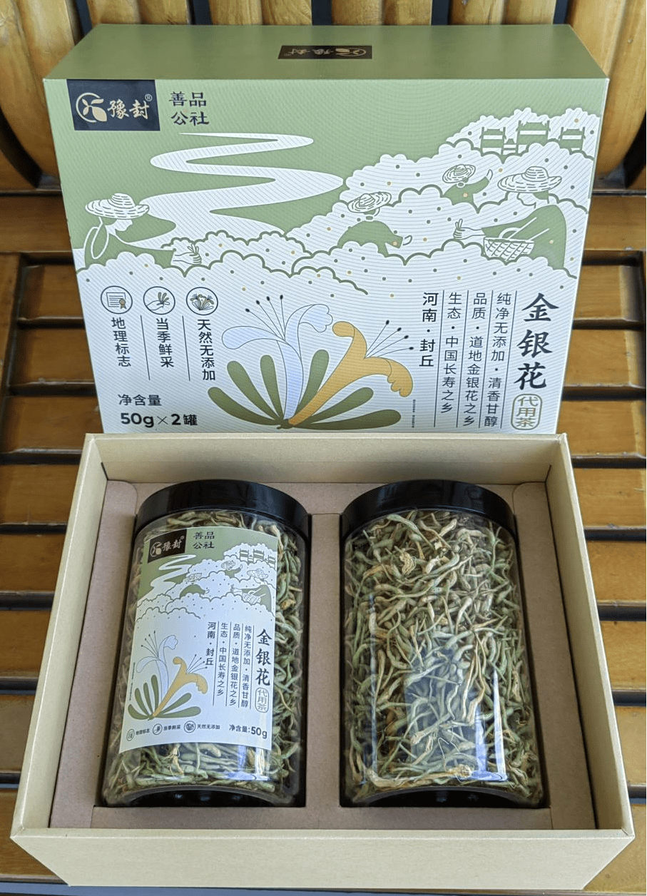 “春夏开花时,从叶腋间生出两朵并蒂小白花,随后花色由白转黄,黄白相映,故称金银花。” 封丘古属魏地,素有“中国金银花之乡”的美誉,栽培金银花有1500多年历史,西晋《博物志》中有“魏地人家场圃所种,藤生,凌冬不凋”的描述。花蕾粗长肥厚,色泽艳丽,悠久的人工栽培历史,加之独特的地理环境和优越的自然条件,使封丘金银花具备了不同于他地的优良品质。
