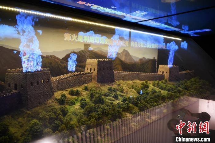 图为万全长城卫所博物馆内展示3D“烽火传递预警”。 翟羽佳 摄