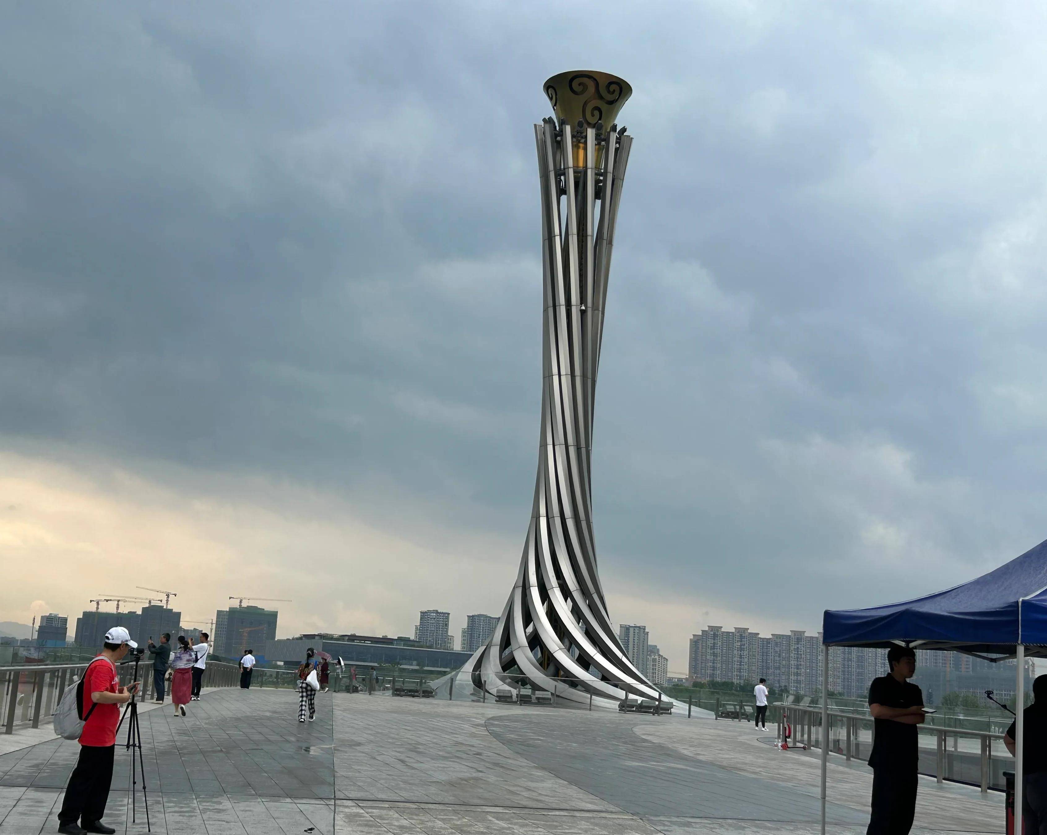 成都大运会火炬塔矗立在主会场正门前的东安湖畔,也很有特色。火把塔高31米,寓意“三十一。世界大学生运动会”。