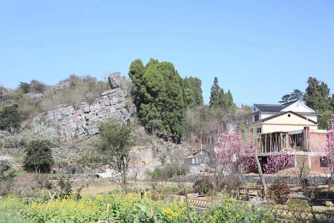 驶过蜿蜒坡道,进入四都镇东岭示范村庄,目之所及奇石遍布,桃花灼灼,景色怡人。