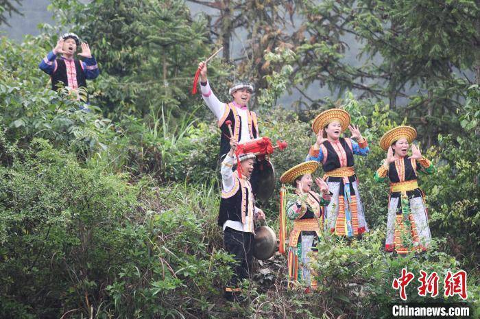 雁鹅界古村落的村民用花瑶呜哇山歌迎接客人的到来。 杨华峰 摄
