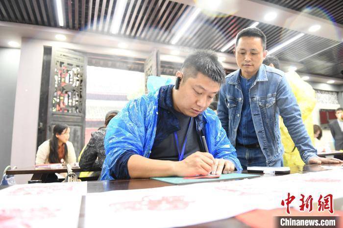 媒体记者体验辰州剪纸。 杨华峰 摄