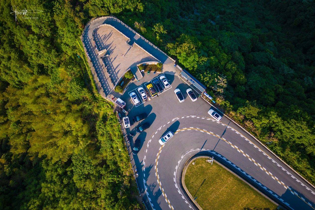 然而以我浅薄的阅历,当身临其境时,心情却很快从满满的期望“跳崖式”跌落到深深的失望!虽然它的确有着“居高临下”的地理优势,但却并不是四明山的最高点;虽然它周边真的随处可见层峦叠嶂,但近在眼前的电力塔和电线实在有碍观瞻;虽然它旁边就是个非常有代表性的“U”字形发夹弯,但这样的景观,对于出门旅过游或者自驾跑过山的网友来说,实在有点见怪不怪……