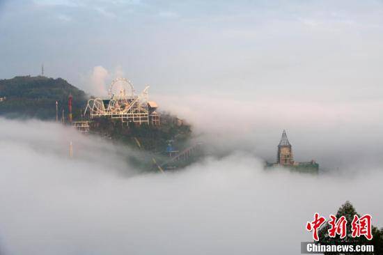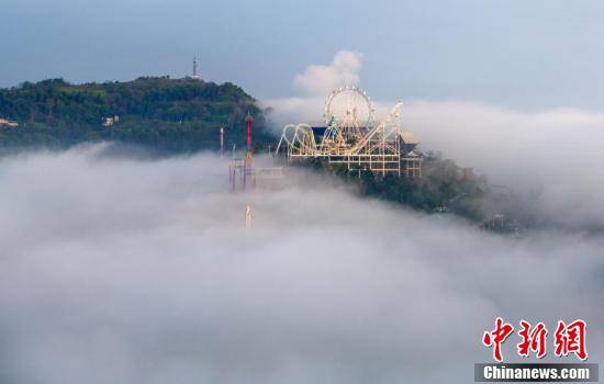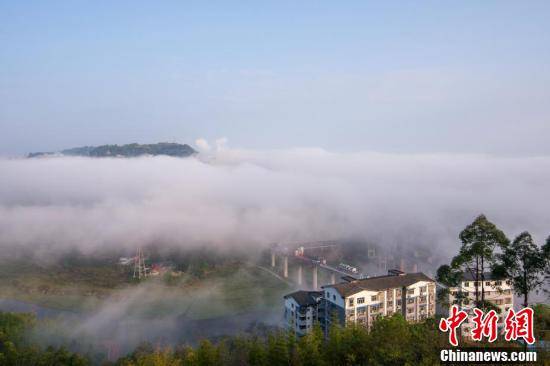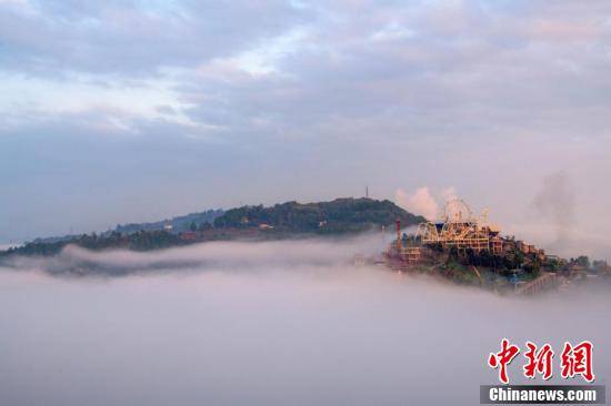 4月1日,三峡库区重庆涪陵红酒小镇出现平流雾景观,整个小镇仿佛笼罩上一层朦胧“面纱”,如梦如幻,宛若仙境。石伟 摄
