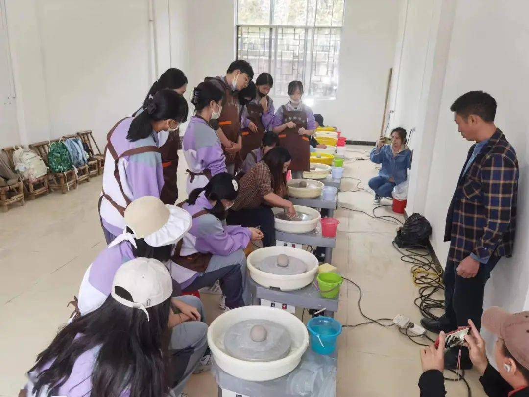 最后,我们来到了牙舟陶博物馆,体会了中国传统瓷器的韵味。在馆中,同学们认真倾听讲解,而后亲自动手制作陶器。陶器红、白、蓝三色如行云流水,恍觉暮沉霞飞,秋山无重数。在同学们的注视中,一件件精美的陶器在一双双柔荑下诞生,大家不仅接近并了解了传统文化,更锻炼了动手能力、实践能力。