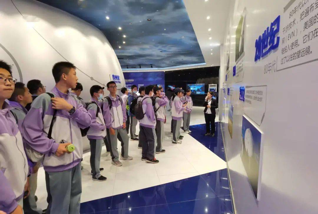 今天是同学们来贵州研学的第二天,也是正式学习的第一天。今天,我们去了三个地方进行学习。首先,我们来到了国际天文体验馆。在馆内,我们学到了各类关于宇宙天文的知识,了解了人类对宇宙认识的曲折过程,还对“中国天眼”进行了一系列了解。这些极大的激发了我们对于知识探索的兴趣,以及对祖国强大实力的无比自豪。