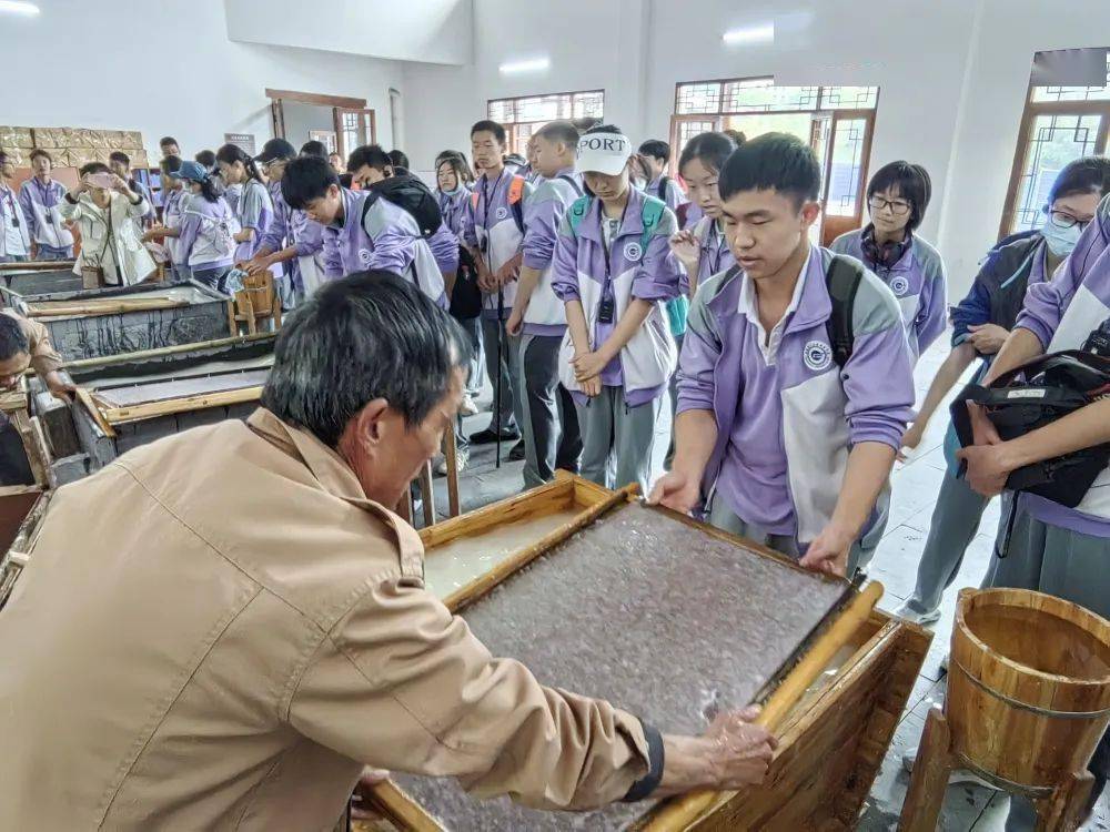 我们还亲手体验了宣纸制作工序之一的捞纸,纸浆在细密的竹片编就的纸帘下泛起涟漪。除了惊叹,我们更是欣慰,我们欣慰于宣纸这种得天地之造化的先人创造能够被我们所继承,且使其放射出了更加耀眼的光芒。我们更加懂得,传承祖先的文化,造福今天的时代,让白云深处的故事隽永绵长,这是我们及子孙后代永续的使命和责任。