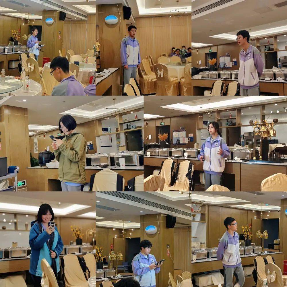 回到酒店后,各个研学小组代表在同学们面前分享自己的收获和见解,表达内心的感受。