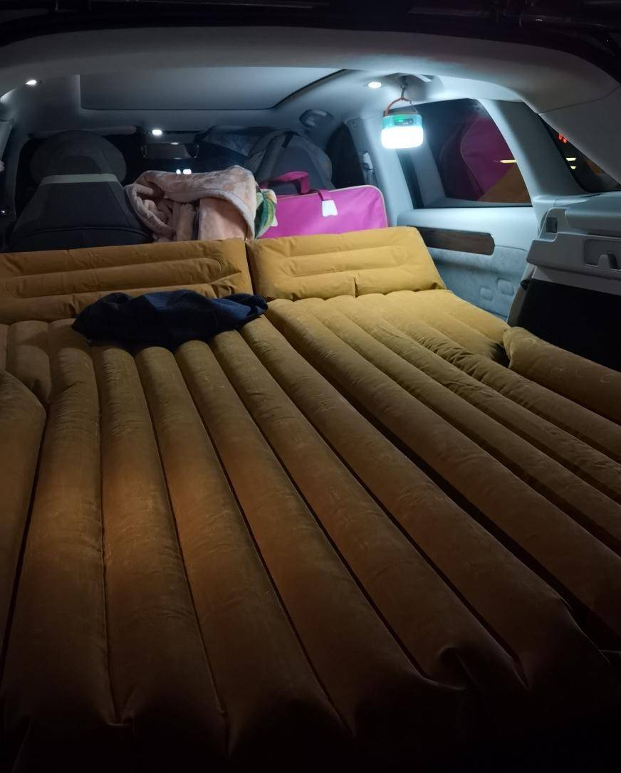 1、可能也有人会说,住有什么可规划的呢?其实不然,住也是需要事先规划的,对于我来说,现在开电车,当然一样也要在住的方面,尽量将电车的优势发挥到极致,达到物以尽用的目的,与住相关的当然就是零跑C11后排放倒,长宽可达200*130(mm),再结合定制充气床垫,妥妥是一个自带空调的移动标准间,一大一小完全没有任何压力,但如果是三口之家,并且小朋友超过1.2米的话,一起享受床车生活就可能就有点不现实啦。