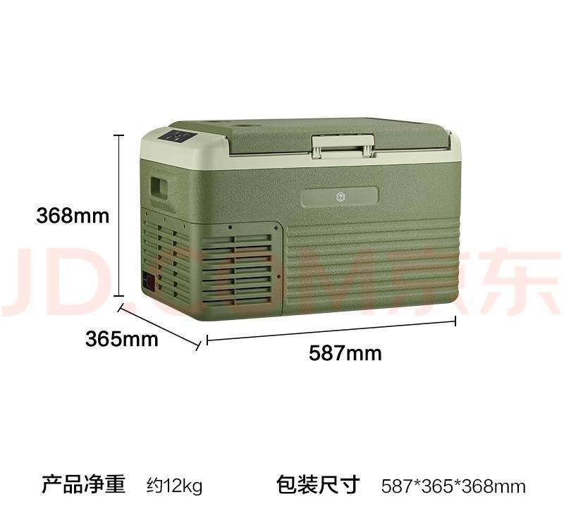 由于天气原因,之前不带压缩机的普通车载冰箱完全不能够满足实用场景,所以赶在五一出行之前,在京东商城买了一个带压缩机的变频车载冰箱,冰箱自净重约12kg,尺寸大小(长/宽/高)为:587*365*368(mm),存储容量为30L,单温单控。