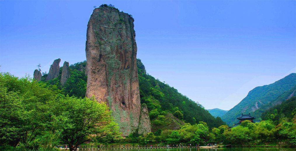 仙都风景区的景色秀丽,景点也是众多的,其中鼎湖峰景点是整个风景名胜区的核心。鼎湖峰,又称“天柱峰”,它东靠步虚山,西临练溪水,状如春笋拔地而起,直插云霄,高约160余米,人们尝谓“天下第一峰”。峰顶有小湖,湖周苍松翠柏掩映。