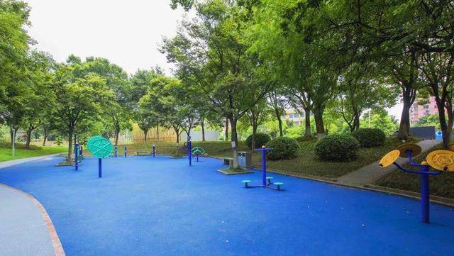 虽说这样的规模已经可以满足市民休闲的基本需求,但是公园的规划还远不止于此,公园为了能让游客有一个更好的健身锻炼环境,还在公园内打造了一条千米之长的塑胶跑套,在跑道的周边还可以看到三块健身场地,如此多的功能,也让翠竹公园形成了多方位于一体的多功能性公园。