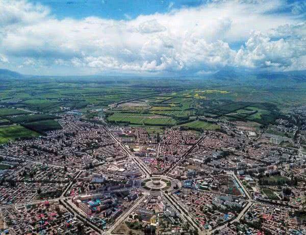 其实从高空中看特克斯县,就像一个八卦图一样,它被称为是我国唯一建筑完整,且又是最大的八卦城。在建城之初,人们取《易经》中的“天地交而万物通,上下交而其志通”之意,而设计建造的都城。整个特克斯县城,以城中花园作为中心,有8条向外辐射的街道,并且有4条环路与8条街道相交。这样的道路设计,使得你无论是走哪条路线,都可以到达你想去的那里,因为道路互互相通,并不像大都市中很多人开车只有少数的选项。
