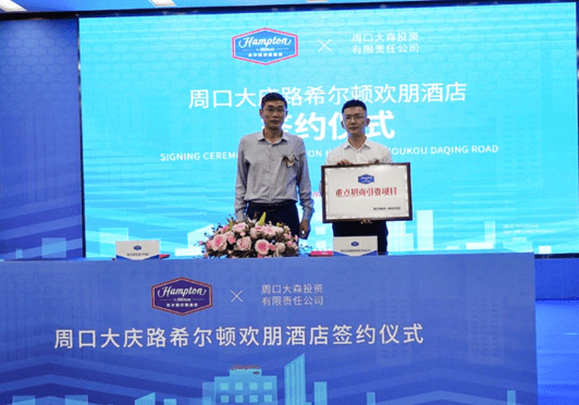 5月9日下午,周口大森投资有限责任公司与希尔顿欢朋酒店签约仪式在周口报业大厦14楼会议室圆满举行。