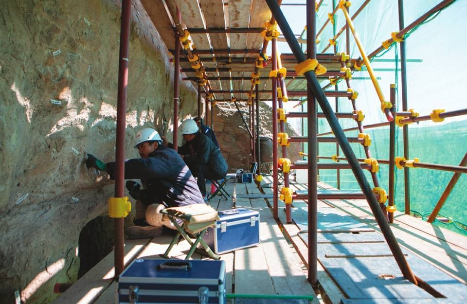 云冈石窟第38窟—40窟保养维护。