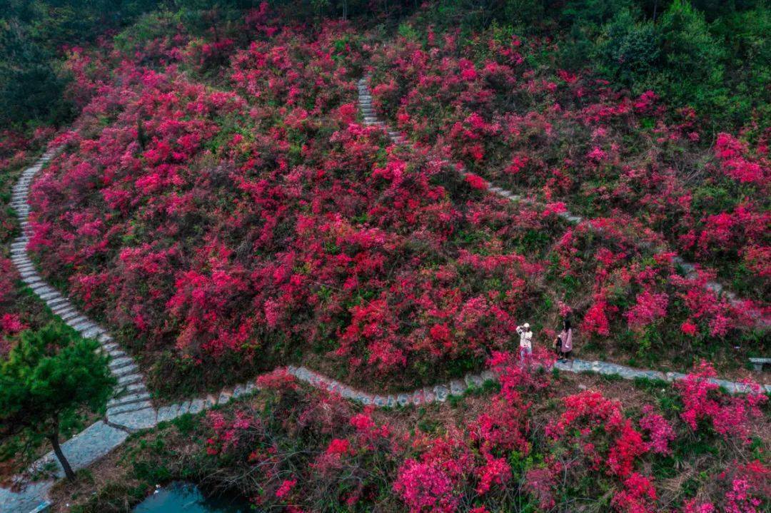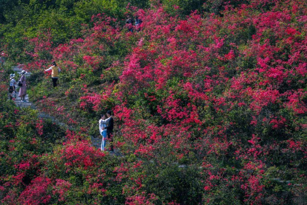 近日,随着气温逐渐升高,安陆市孛畈镇龙冲的天然野生杜鹃花次第开放,逐渐进入盛花期。姹紫嫣红的杜鹃花海吸引了众多游客徜徉花海,享受着春天的美丽……