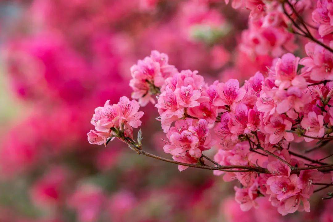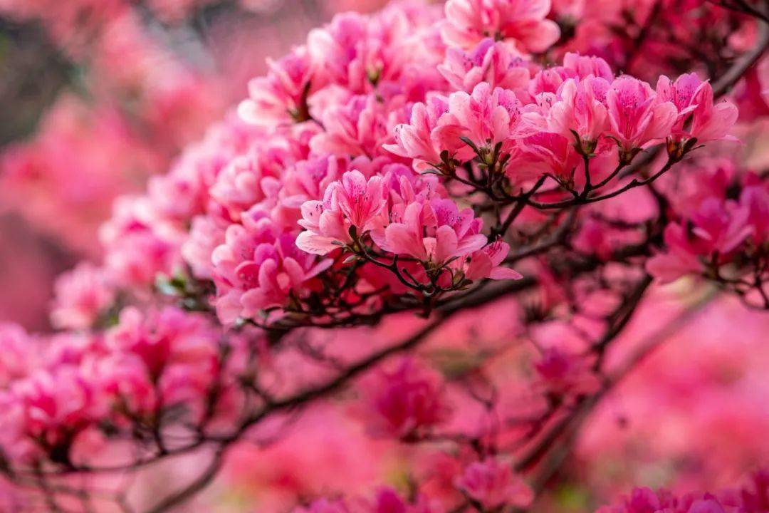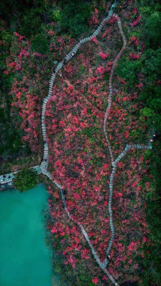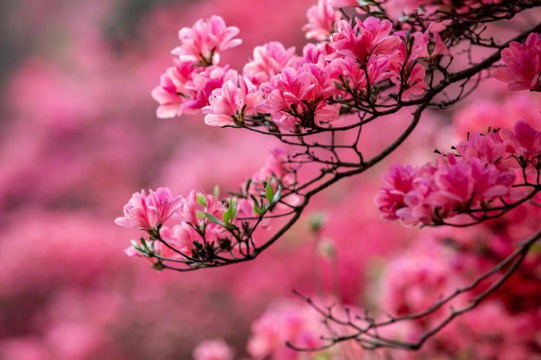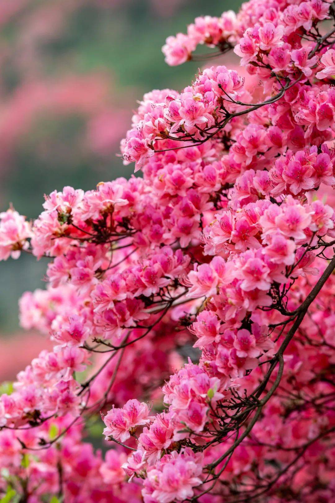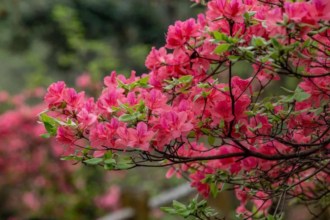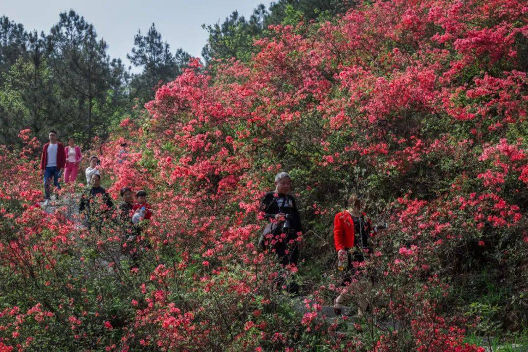 从4月开始,这里杜鹃花已经迫不及待地竞相绽放,有大红、有粉红,一朵朵镶嵌在青山丛林之间,极目远眺,层层叠叠,漫山遍野,犹如油画一般,游客漫步花丛,无不陶醉其中,流连忘返。