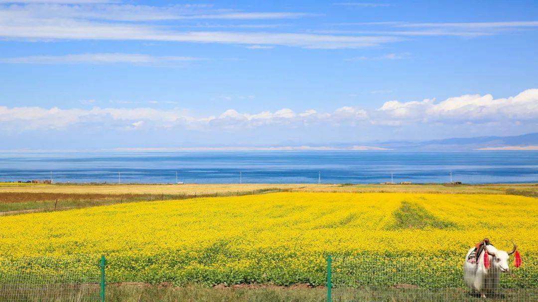 青海湖,一半是花海,一半是美女。