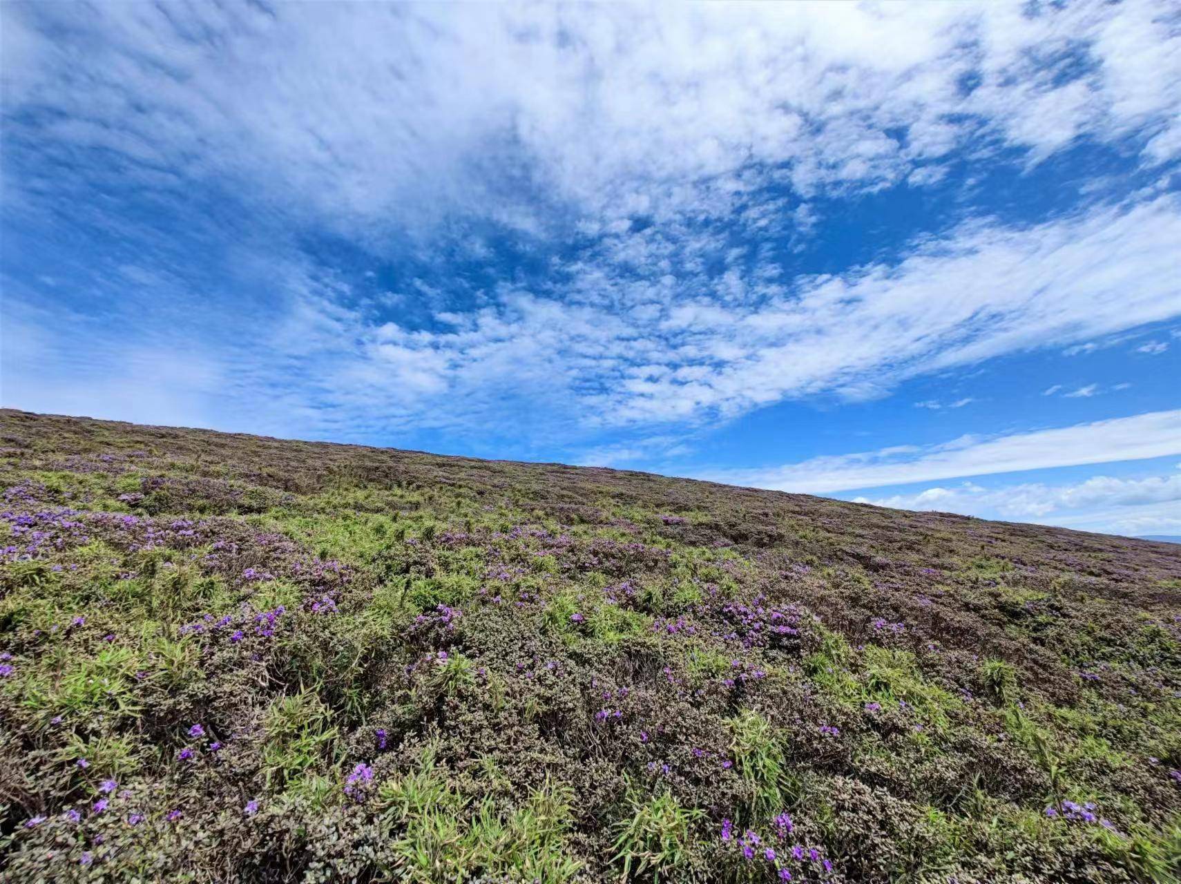 据悉,黄茅埂索玛花景区位于凉山州美姑县井叶特西乡,该景区是美姑第一个国家3A级旅游景区。景区内气候宜人,含氧量高,索玛花遍地开放、落叶松随四季变化,山间小路纵横,小泉瀑布潺潺流淌,是夏季避暑的绝佳圣地。索玛花是杜鹃花的彝语名,是彝族人民最具有代表性的花,它象征着美丽与善良,坚忍与质朴,神奇与崇尚,勤劳与大方。它生长在中国西南彝区高山上,是彝族人眼中奇特美丽的花朵,是彝民族的族花。当索玛花盛开的季节来临时,白色的花瓣,红色的花蕊,在山间肆意的开放着,紫色、粉色的花朵夹杂在郁郁葱葱的森林里,美不胜收,犹如碧绿的翡翠,镶嵌在美姑大地上,黄茅埂就像披上了一个巨大的锦缎。