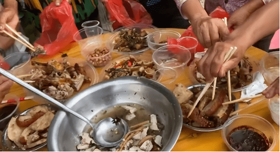 当时经济水平有限。吃完饭,人们用红色塑料袋包剩菜。人多菜少的时候,会按照公平公正的原则进行划分,可以说是非常经典的。不像现在,一个觉得打包丢脸,一个觉得没必要,造成了很多粮食的浪费。