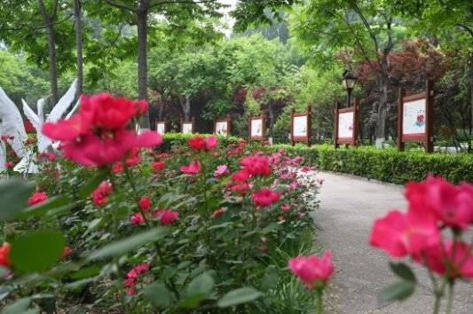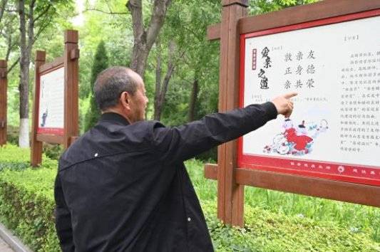 一花一草皆生命,一砖一瓦皆有情。红、黄两色的宣传栏错落在绿阴、红花、小径之中,熠熠生辉,为公园增添了浓郁的文明内涵韵味,让美德与美景在此刻交相辉映、相得益彰。
