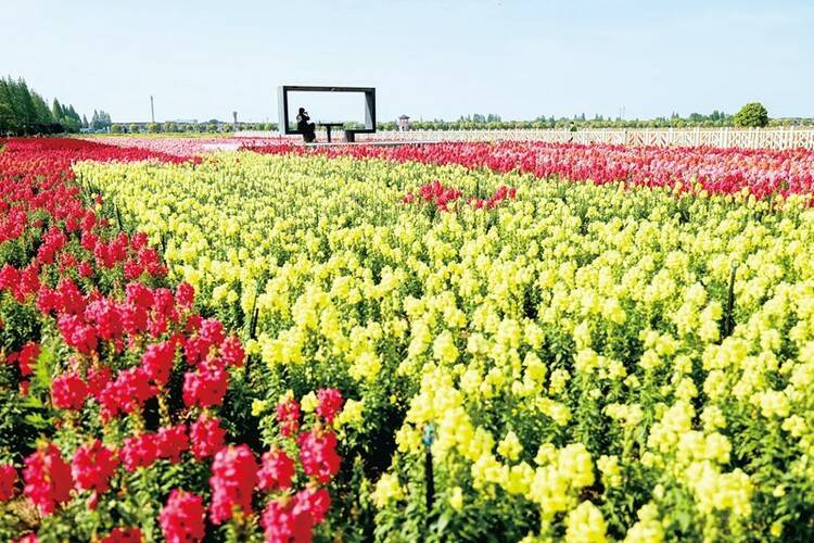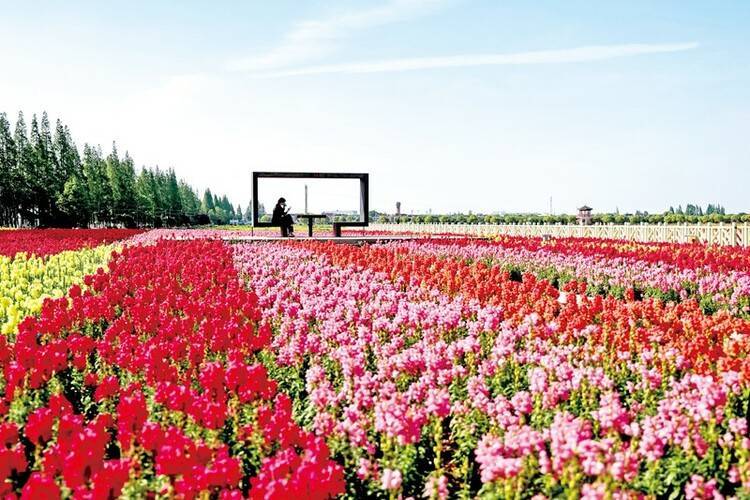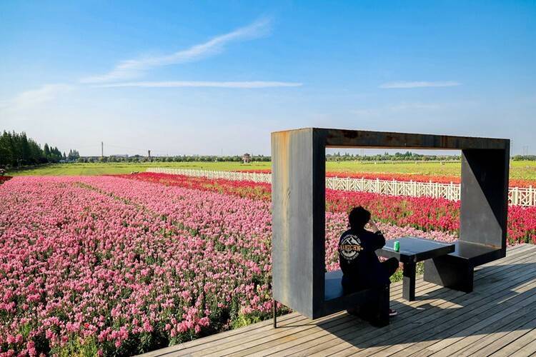 5月9日,羊尖镇严家桥花海边的4万平方米观赏花卉盛开,市民在花间小憩,享受着美好一刻。严家桥花海位于羊尖镇省级绿色优质农产品(水稻)基地严家桥村水稻种植示范区,这里夏收后种植彩色水稻,使农业与文旅有机融合,目前又在田边移栽了观赏花卉,吸引了大量游客,成为锡山区的又一“打卡地”。(无锡新传媒 作者 吕枫 摄)