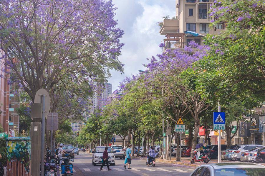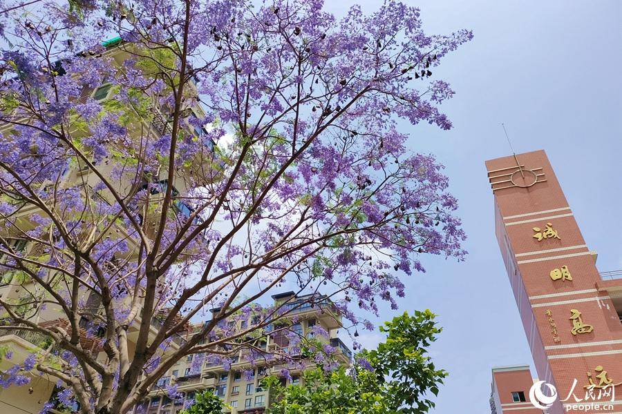蓝花楹通常在每年4月至5月开花,花期大约15天。人民网 陈博摄