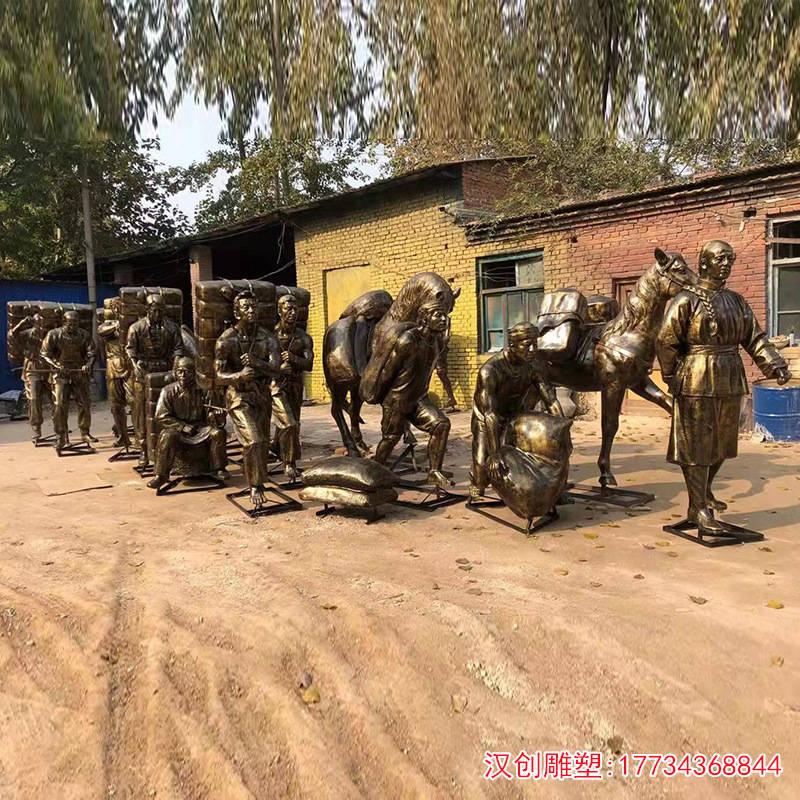 玻璃钢茶马古道文化雕塑 马帮商队主题雕塑
