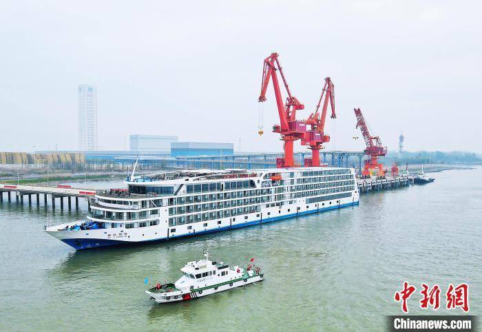 3月31日20时许,扬州中航宝胜码头码头迎来2023年首艘长江豪华游轮。 陈菊琴 摄