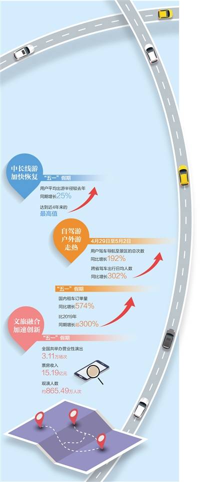 文旅市场供需两旺,文旅消费强劲复苏,国内旅游出游人次和旅游收入同比大幅增长;中长线游加快恢复、自驾游户外游走热、文旅融合加速创新……这个“五一”假期,文旅消费交出亮丽成绩单,折射出我国消费市场的蓬勃活力和巨大潜力,也见证中国经济强大的内生动力。