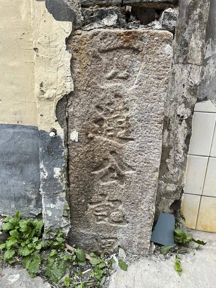前些年福佑路旧改启动后,居民陆续迁出,去年实施主体确定之后地块上的建筑进行了基本“清洗”——违建拆了,电器撤了,家具搬了,房子彻彻底底地空了。冯国鄞想再来看看老城厢的房子,也因此有了机缘,得以走进嵌含石柱的屋子,发现了另一根。屋子里的这方石柱较墙头上的那根稍矮一些,结合柱子上的孔洞可以判断为牌坊外侧石柱。它的“现身”让这座天官牌坊有了更具体可考的形制——四柱三门。随之而来,天官街的定位、宽幅也有了更多依据。