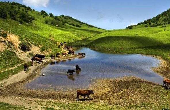 黄安坝镶嵌于蓝天与高山之间,宽阔的草原,山峦起伏像座座蒙古包,白云悠悠,牛羊点点,仿佛置身于内蒙古大草原上,有一种古代金戈铁马的感觉。草场四周林海苍茫,群峰竞秀,五色野花遍地,满目葱绿一片。