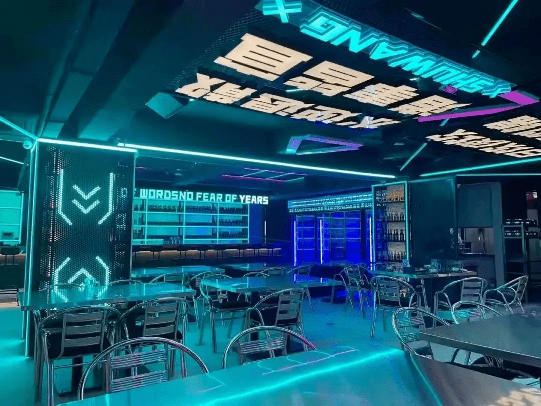 图为蜀王火锅赛博朋克店内装饰