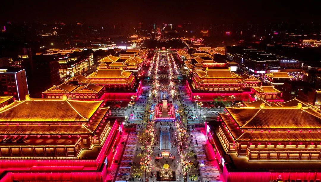 大唐不夜城位于西安大雁塔脚下,南北总长2100米,东西宽500米。 在唐代,这里曾是大唐高僧玄奘的译经之处,众多文人骚客也曾在这里赋诗抒怀,新科进士更把“雁塔题名”视为莫大荣耀。