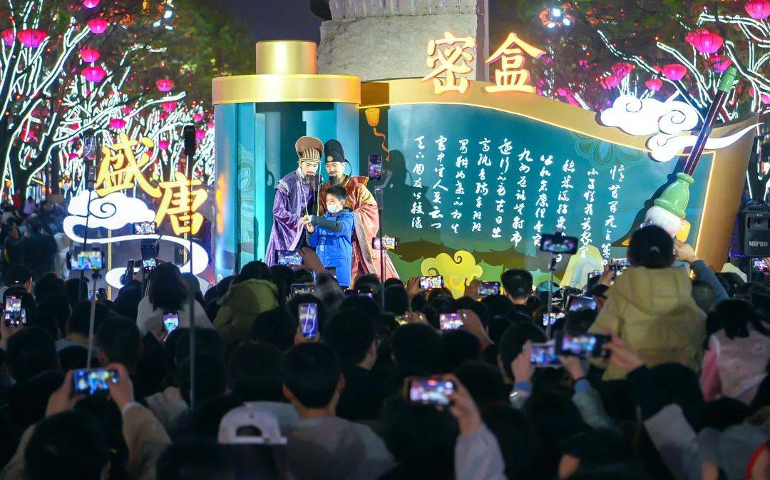 从“不倒翁小姐姐”到“李白对诗”,再到如今的“盛唐密盒”,大唐不夜城近年来持续推出的文化类互动节目,一直稳居当地文旅界的“顶流”。许多外地游客来西安旅游的目的,由过去的“想跟不倒翁小姐姐握手”变成“想跟‘房谋杜断’组合答题拍照”, 大唐不夜城已成为古城西安的一张魅力名片。