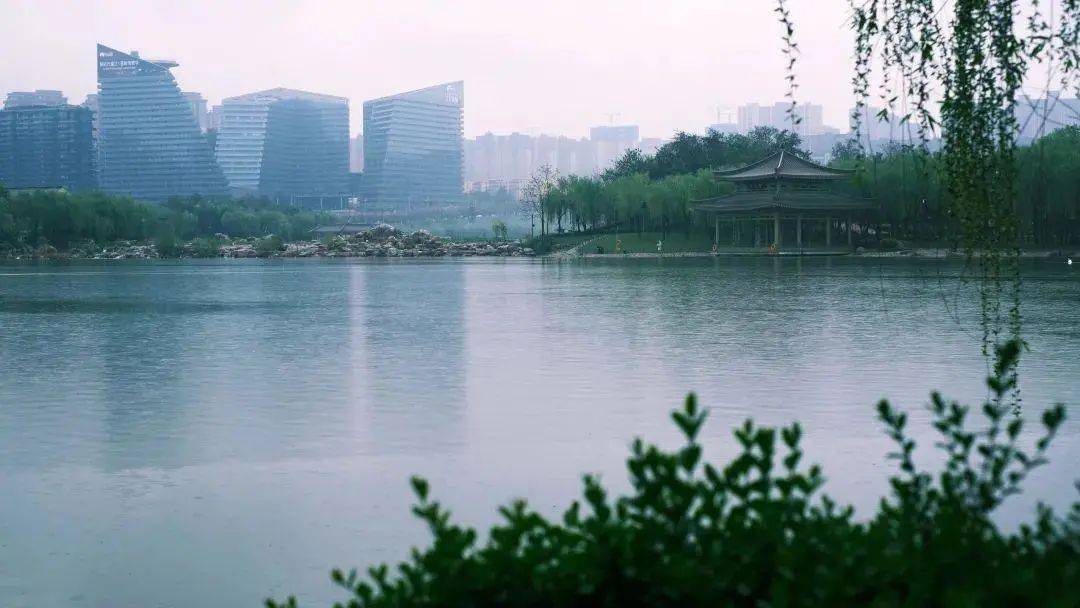 春雨朦胧的曲江池。