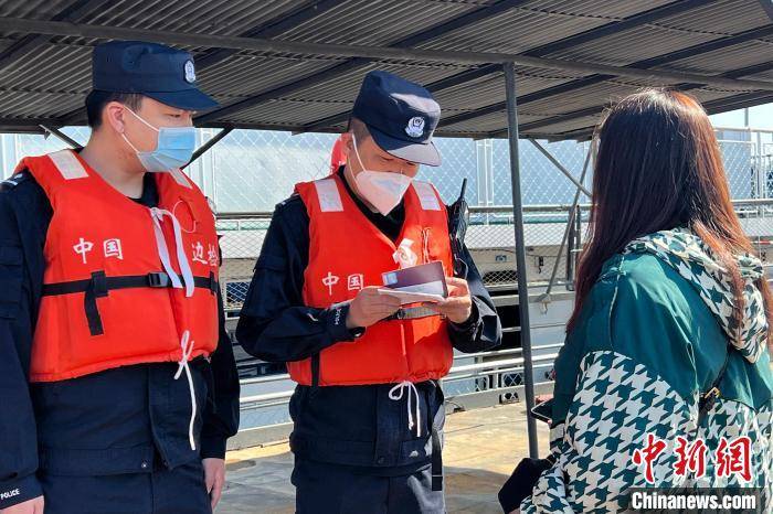 旅检现场,出境旅客接受边检民警出境证件检查后,有序登上停靠在黑河水运旅检口岸的码头客轮。黑河港务局客运公司经理顾宏杰说:“伴随客流增加,我们还会增加航运班次,保持充沛的运力。”