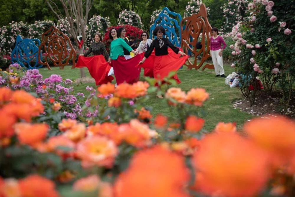 作为本市“百条花道”点位之一,花木月季园的美,走在路上就能一眼看见。走进幽香阵阵的园中,更是跌入了月季的海洋。38个品种、1.2万余株月季争奇斗艳,涵盖藤本型、灌木型、大花型、丰花型等类别。低矮的月季色彩缤纷,四五十株树状月季则花大如碗,不经意间还能撞见瑞典女王、甜梦、抓破美人脸等绿地中较少见的品种。