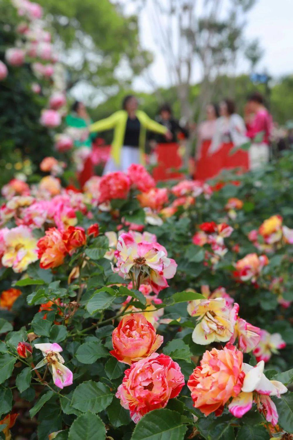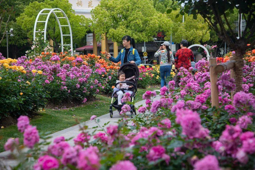 花木月季园盛放的五颜六色月季吸引了不少市民游客来此赏花游玩