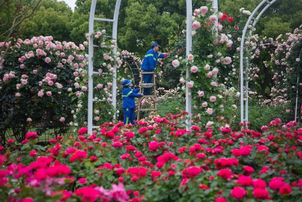 修剪更是考验技术的一环。上海的月季原本在“五一”“十一”开两波花,但百条花道的创建提出,希望增加“七一”的开花节点,每年让月季开三波甚至多波花。其中奥秘,就是修剪的时间、手势和后续的水肥管理。