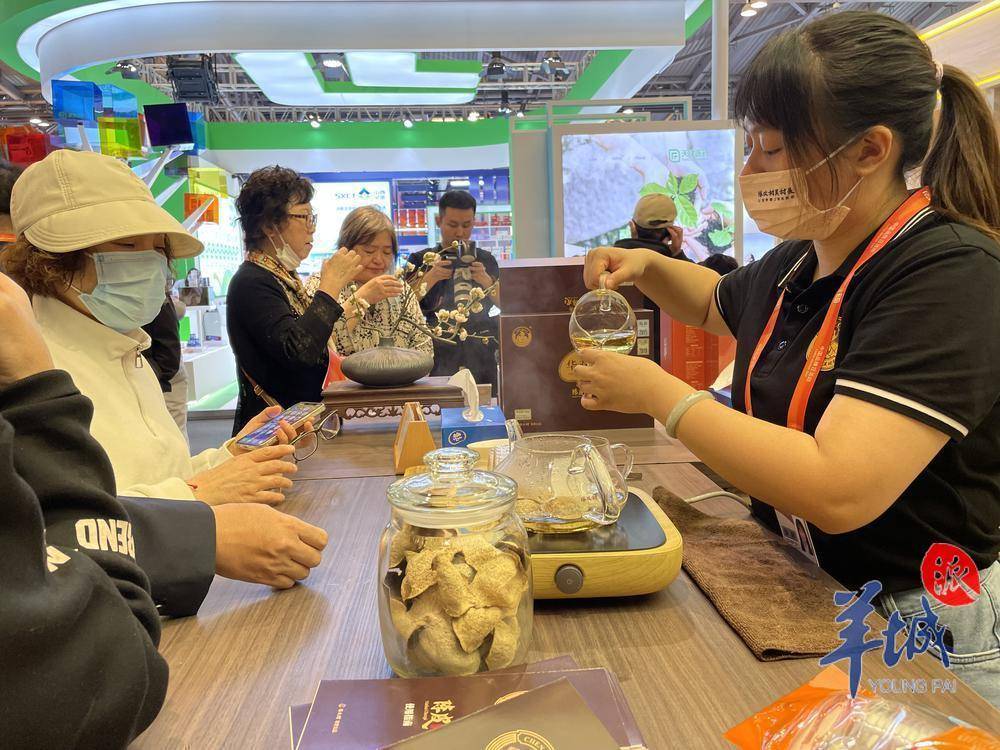 “没想到茶叶的回甘能这么香”,前来观展的市民陈女士对记者感叹。在潮州老字号红腾茶业带来的凤凰单丛茶展台前,不少参展商和市民正细细品味来自潮州凤凰山的茶韵。相关负责人介绍,凭借形美、色翠、香韵、味甘,红腾这款单丛茶荣获广东春季名优茶评比金奖、第十二届国际名茶评比金奖等多项荣誉。(更多新闻资讯,请关注羊城派 pai.ycwb.com)