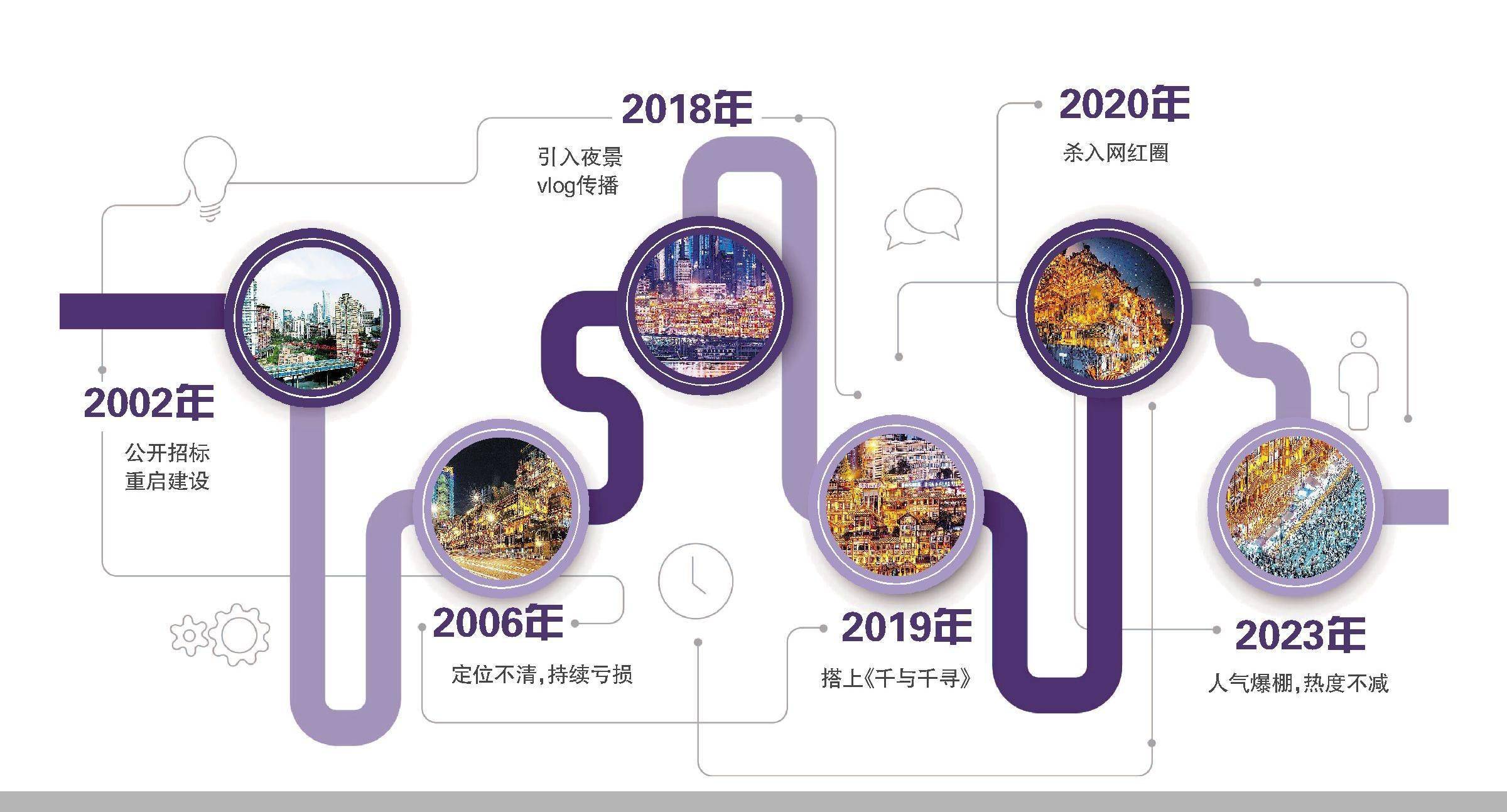 2002年,是重庆成为直辖市的第五年。2300年历史的洪崖洞破败不堪,为了保护文化遗产,重庆市公开招标,重建洪崖洞。 2006年开街之后的五年内都处于亏损状态。“游吊脚群楼,观洪崖滴翠,逛山城老街,赏巴渝文化”的定位,让本地人不买账、外地人不认识。