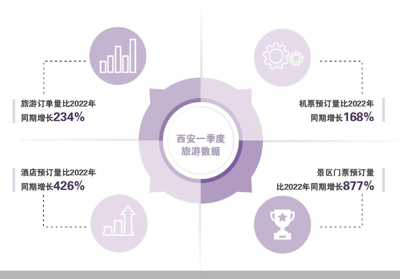 数据显示,2023年一季度,西安旅游订单量比2022年同期增长234%,机票预订量比2022年同期增长168%,酒店预订量同比增长426%。特别是景区门票预订量,同比增幅高达877%。对比同样复苏最快的TOP10城市北、上、广等,西安一季度景区与旅游订单的数据也均排在第一的位置。