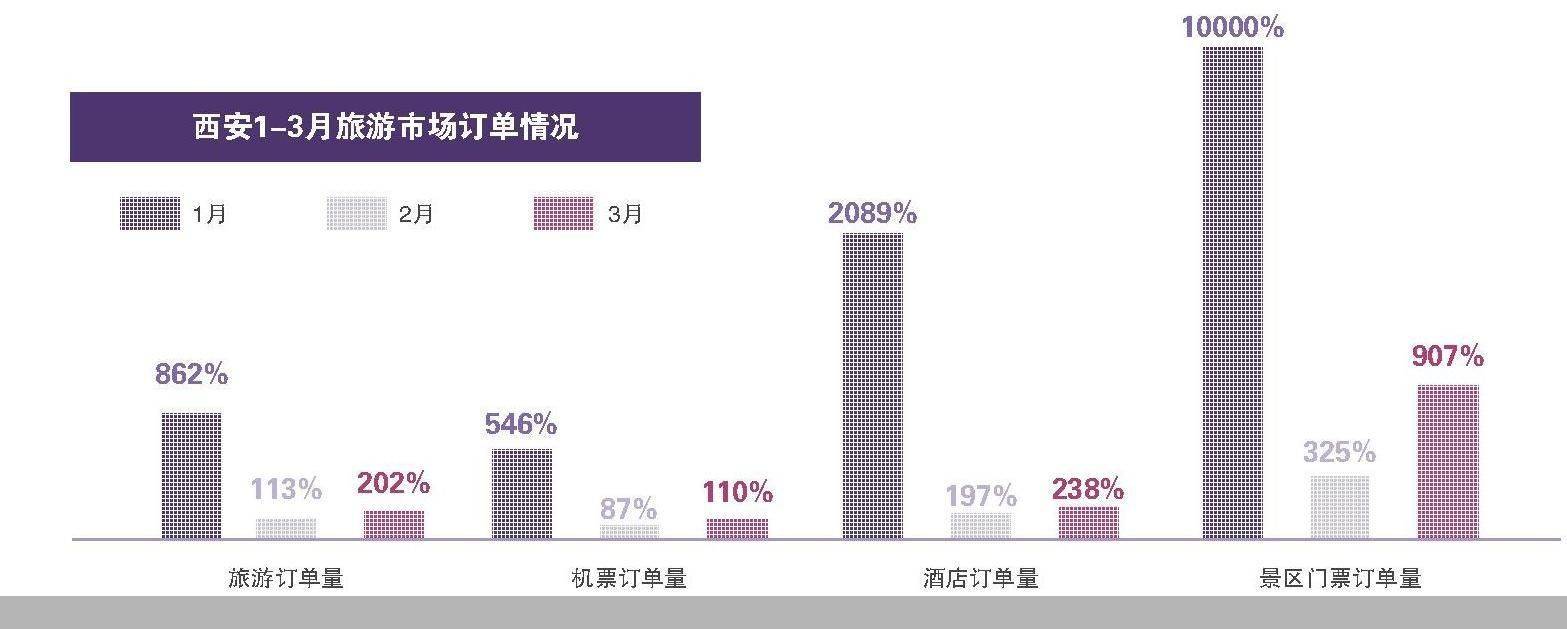 携程数据显示,2、3月西安旅游订单量同比分别增长113%、202%,相比1月大幅放缓,不过2、3月西安机票、酒店订单量相对保持一定增速。数据显示,2、3月西安机票订单量同比分别增长87%、110%,酒店订单量同比分别增长197%、238%。
