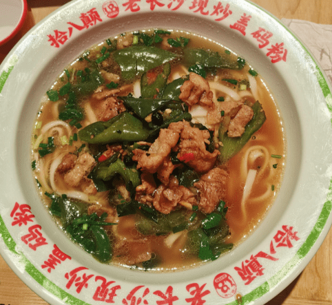 老长沙炒粉的主要原料是豆腐皮和粉丝,再加上虾皮、瘦肉和干贝等海鲜,用老油、老汤和老站等基础佐料,经过翻炒、蒸等多种工艺烹制而成。一碗老长沙炒粉,有芳香的汤味,口感非常的细腻,是一道以口感为主、兼顾色香味美的传统湘菜。可以根据个人口味在汤汁上调配各种佐料,比如辣椒酱、老干妈、蒜泥等。
