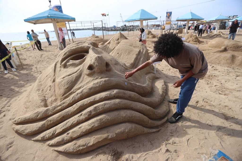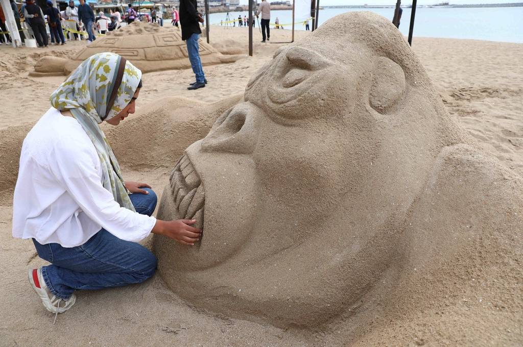 埃及亚历山大沙雕节举行,海滩上沙雕作品栩栩如生。
