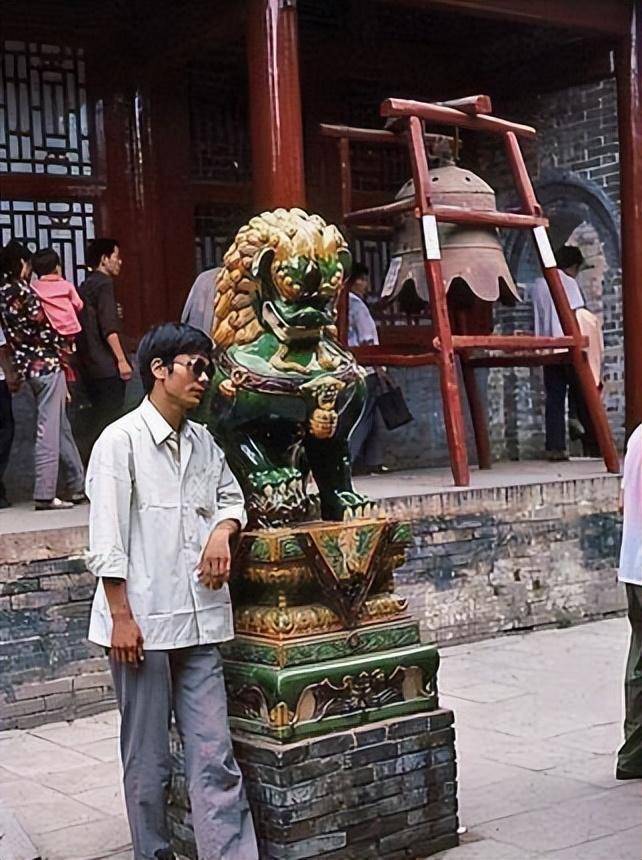 一位戴蛤蟆镜的游客,在少林寺留影。蛤蟆镜在80年代非常流行。